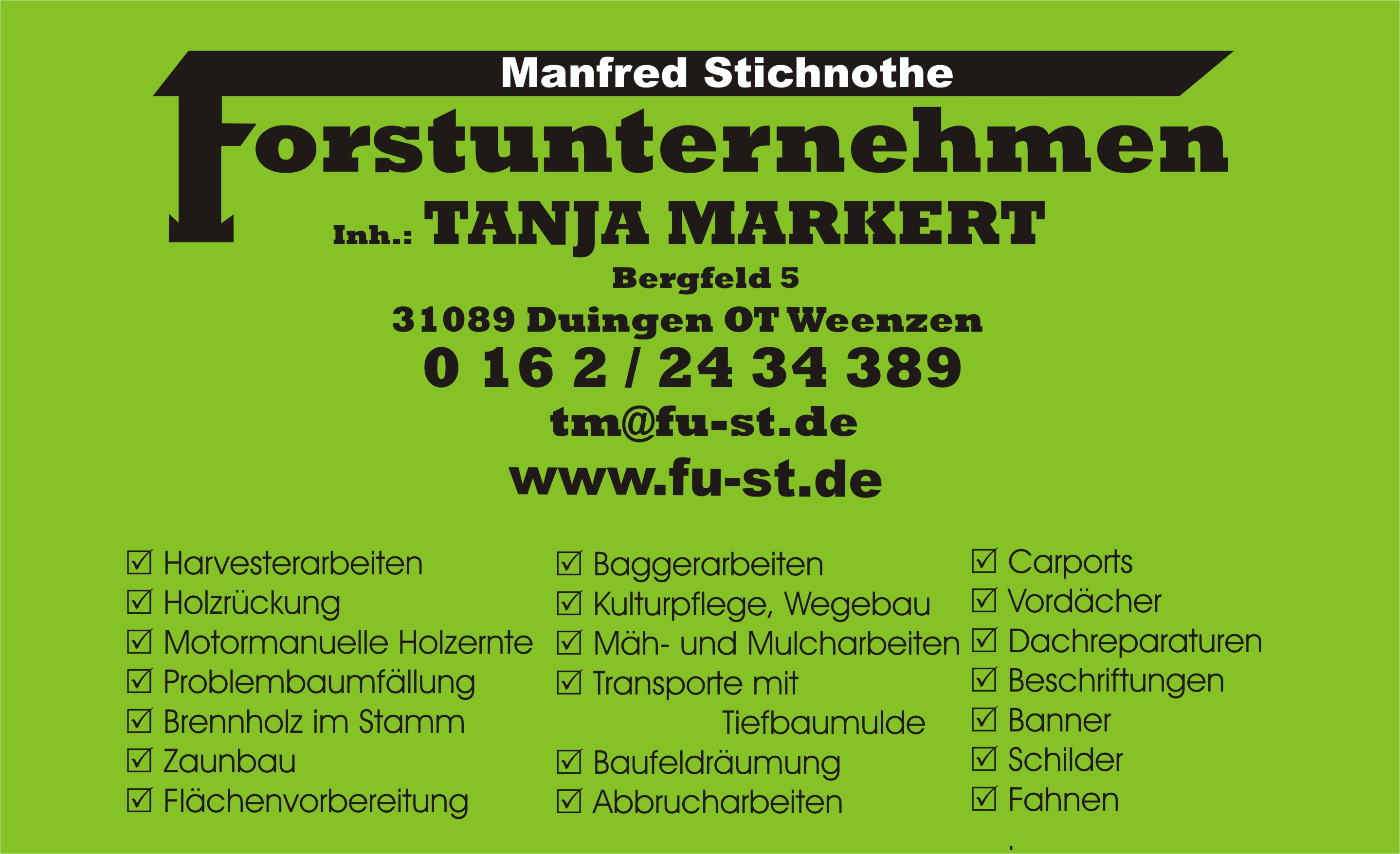 Forstunternehmen M.Stichnothe Inh.: T.Markert Markert Bergfeld 5 31089Duingen